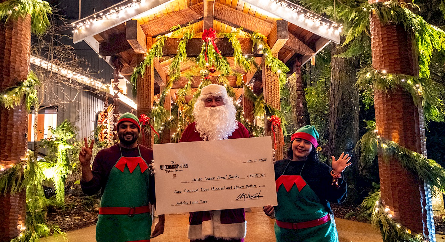 The Inn is aglow with holiday lights, evergreens, and the cozy warmth that settles in each December, a familiar feeling that marks the arrival of the festive season. This year’s Holiday Light Tour and Fundraiser was a special moment to welcome the season alongside our community, and together, we raised $2155.50, complemented by an additional $2,155.50 from the Inn in support of Fish and Loaves Tofino and the Food Bank on the Edge in Ucluelet. As the year draws to a close, I find myself reflecting on all that 2025 has brought us at the Wickaninnish Inn. There is a great deal to appreciate, and many reminders of how fortunate we are to call this coastline home.